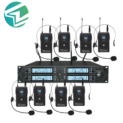 8-channel UHF Wireless Microphone System Head Mounted Microphone for Teaching Conference Presentations